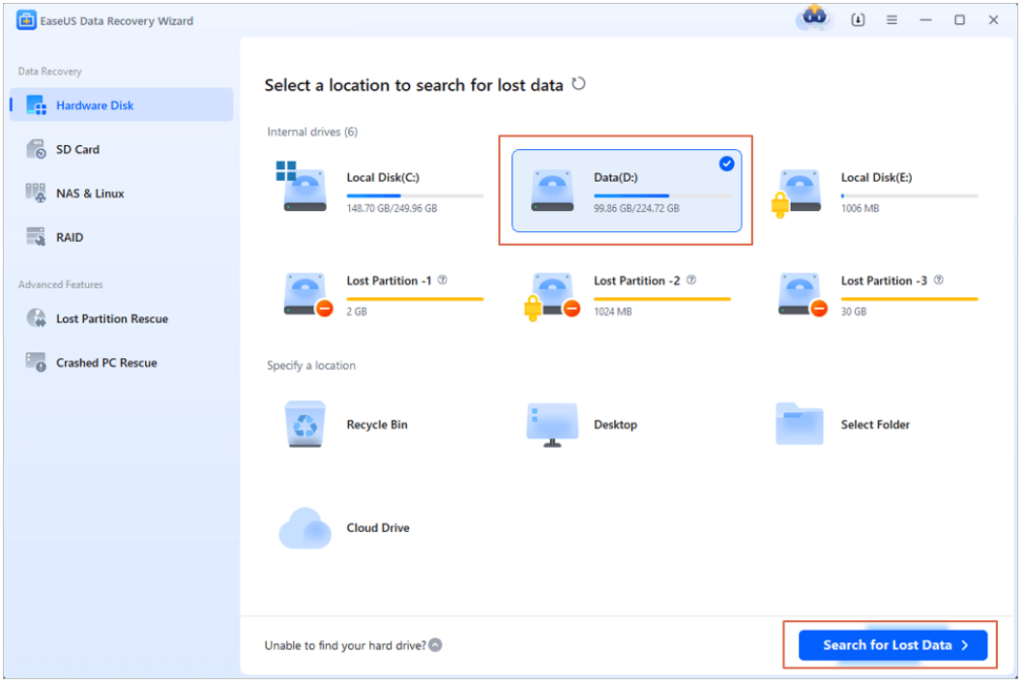 2️⃣ 삭제된 드라이브 선택 (C / D)